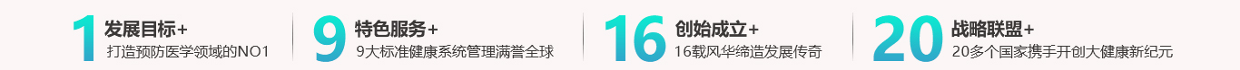 打造预防医学领域的NO1致力于防控疾病风险,改善亚健康、延缓和逆转衰老专注于生命健康管理员制医疗机构,以“预防为中心”打造预防医学领域的NO1,让更多的人享受一站式、高性价比的健康服务,让更多的人实现健康梦想。科学高效的预防医疗体系,严谨私密的会员制服务,全球优质医疗产品和资源全球化医师团队,一流设备设施。国际化大师级美学环境。